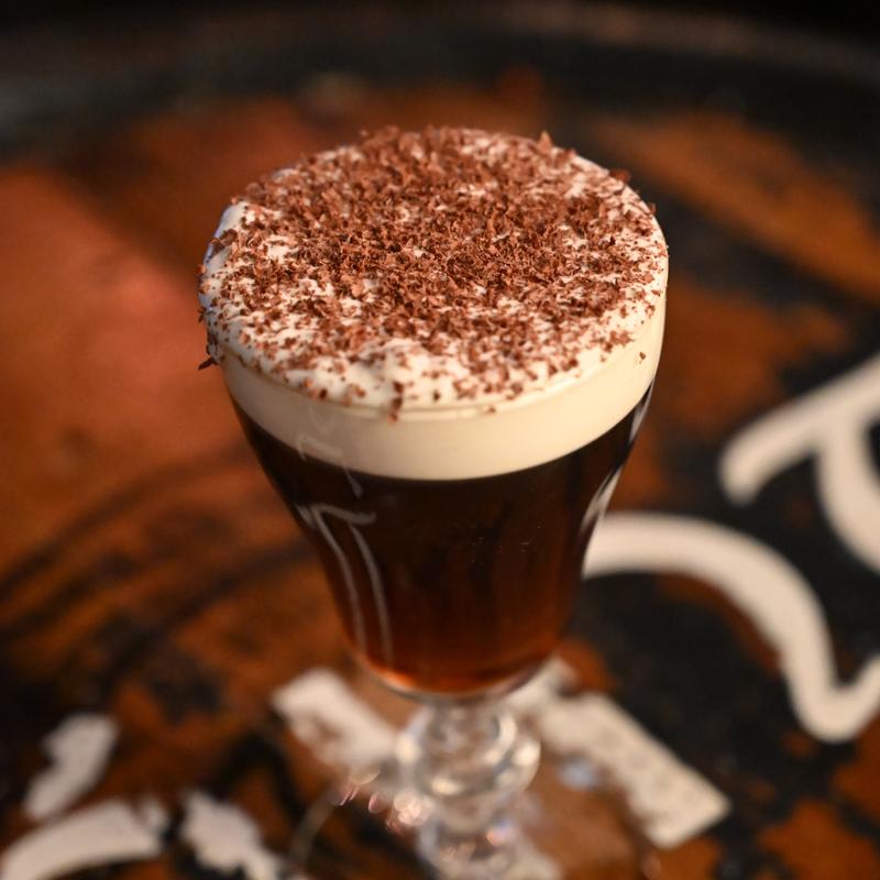 Classic! Made with Tullamore D.E.W., Guinness and Coffee Syrup. Garnished with Shaved Dark Chocolate.