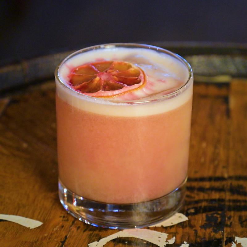 Take on a New York Sour but topped with Chilled Mulled Wine.
