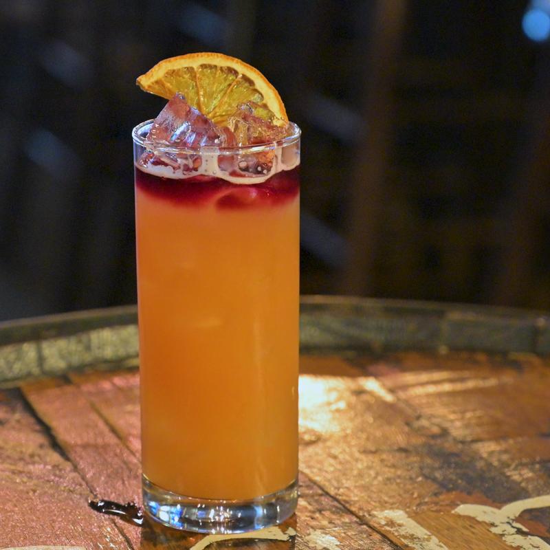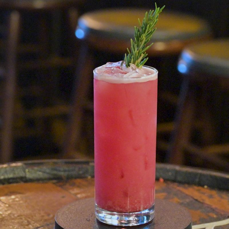 Corny Name but tastes Delicious! A Classic Tom Collins made with Pomegranate and Whites.